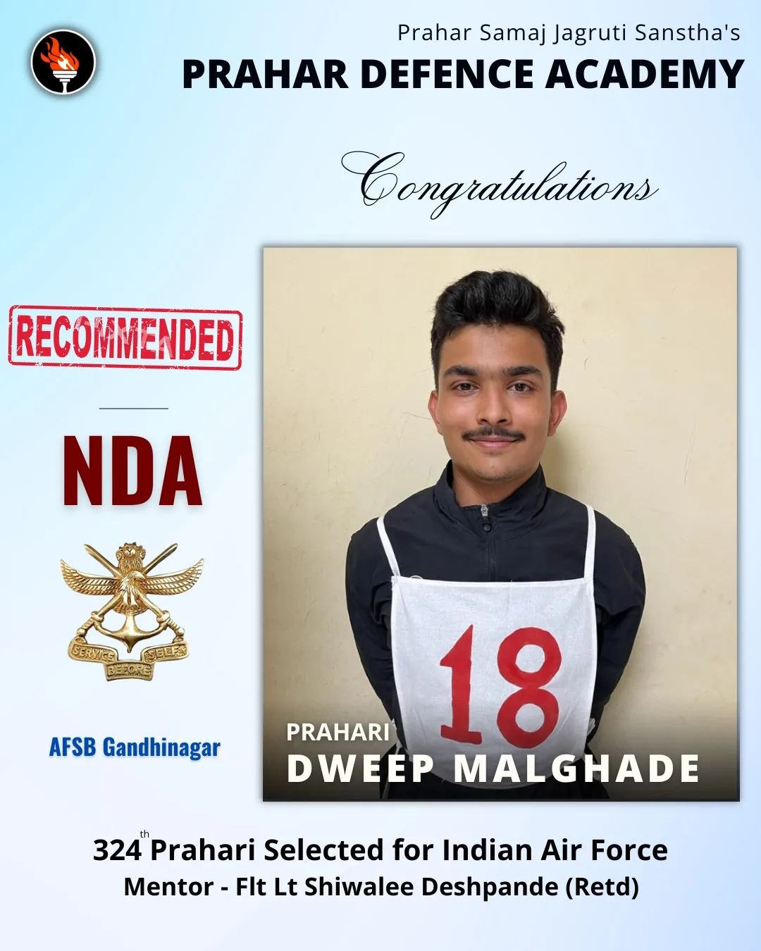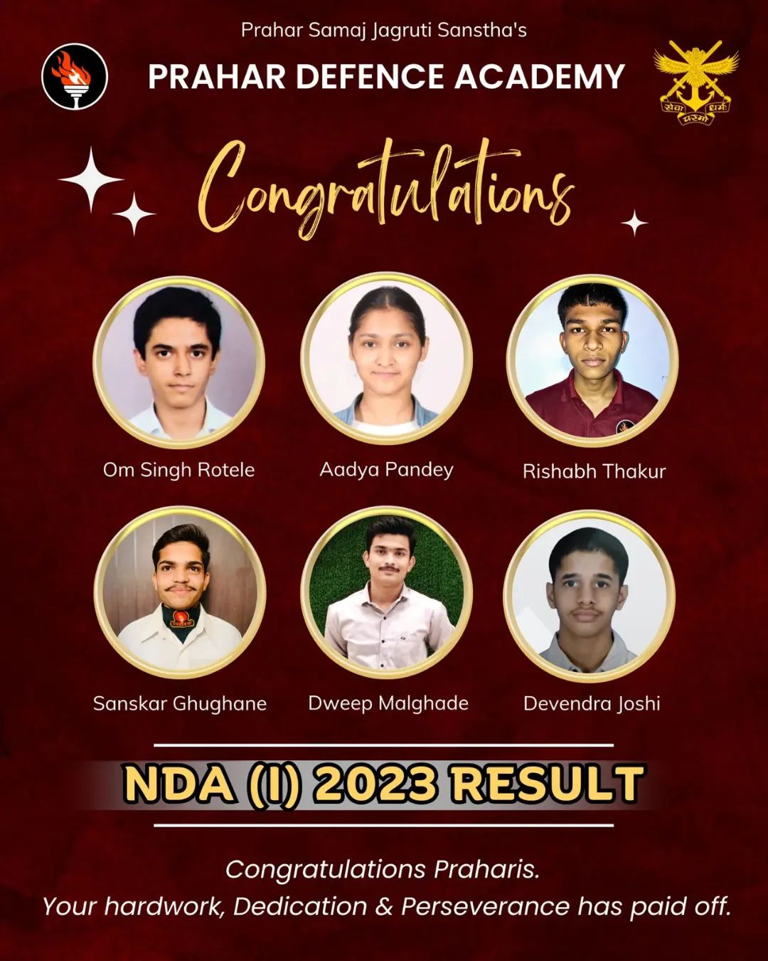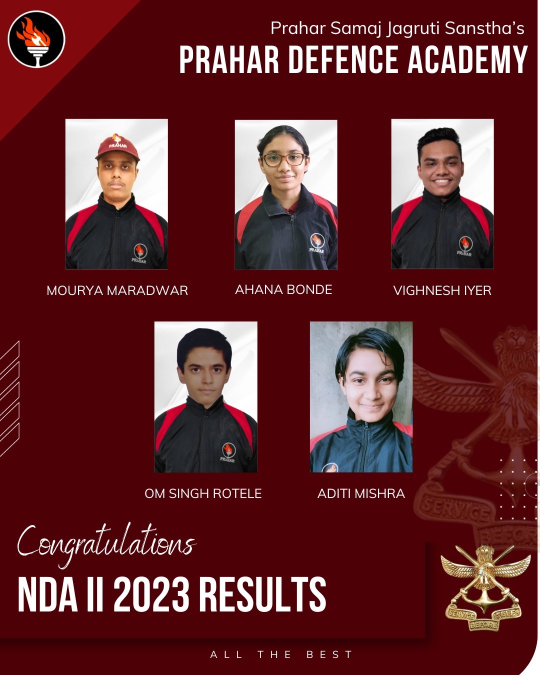 Prahar Defence Academy is an initiative of Prahar Samaj Jagruti Sanstha, Nagpur. We provide you with the best training and guidance for Indian Armed Forces Entrance Exams and Service Selection Board Interview.