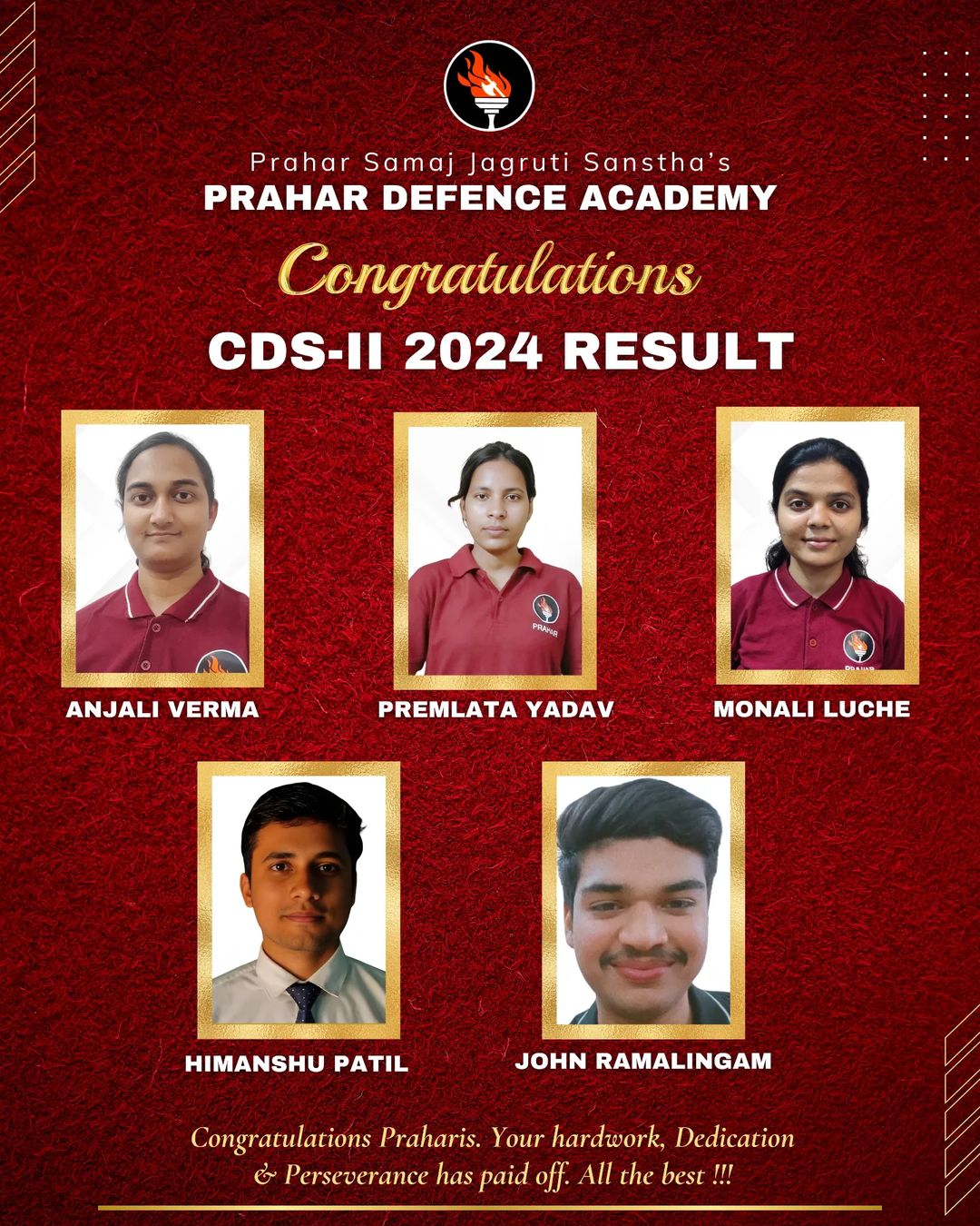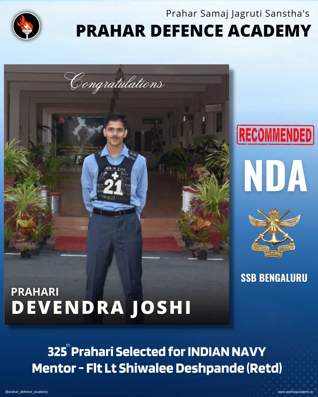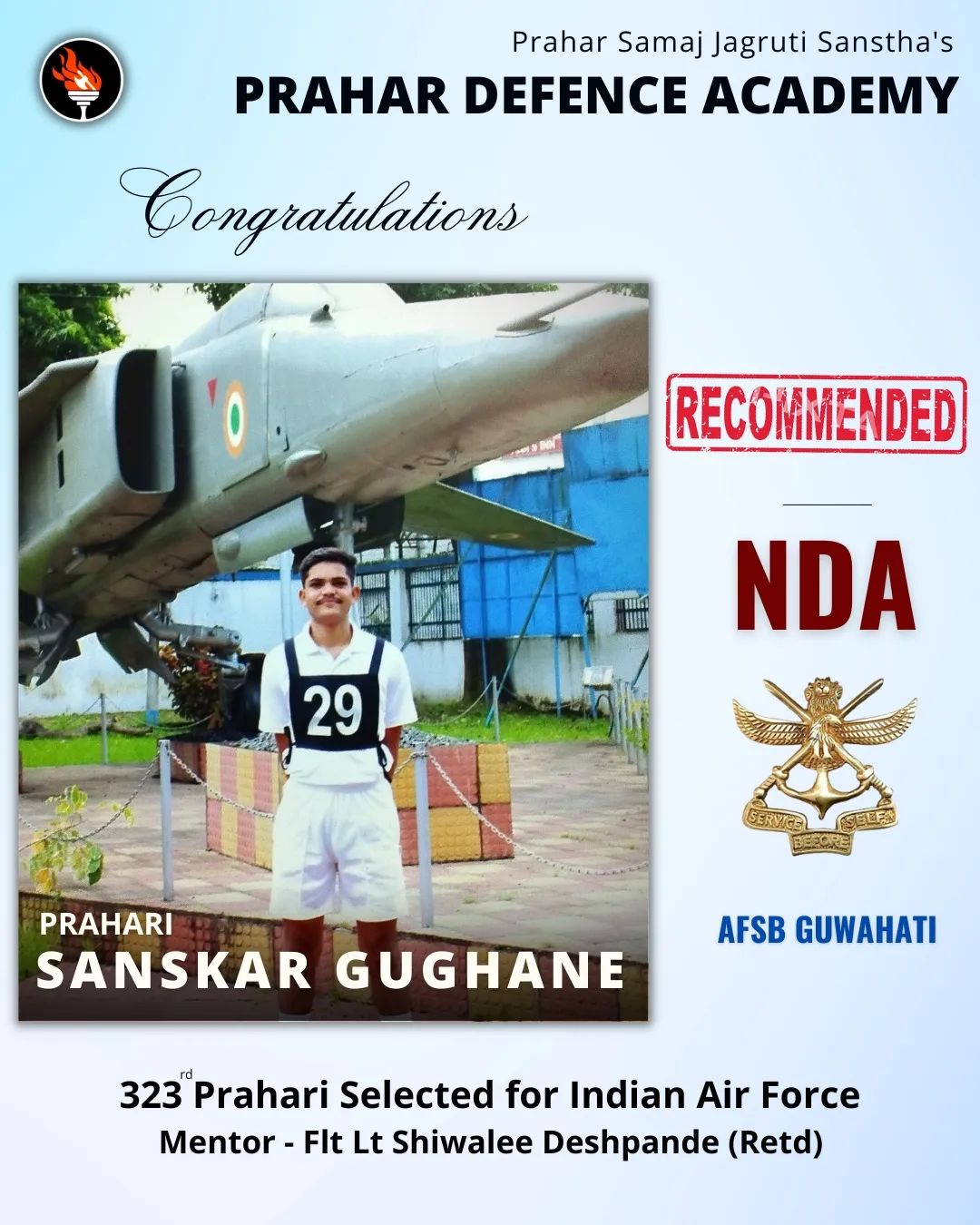 Prahar Defence Academy is an initiative of Prahar Samaj Jagruti Sanstha, Nagpur. We provide you with the best training and guidance for Indian Armed Forces Entrance Exams and Service Selection Board Interview.